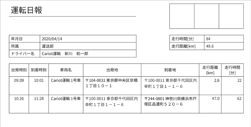 専用の用紙に手書きをした記録を集計する手間を省くことができるようになるため、管理者とドライバーの作業負担を軽減します。